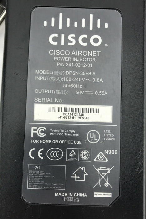 Cisco DPSN-35FBA DC56V 0.55A POE Midspan Ethernet Power Injector 341-0212-01