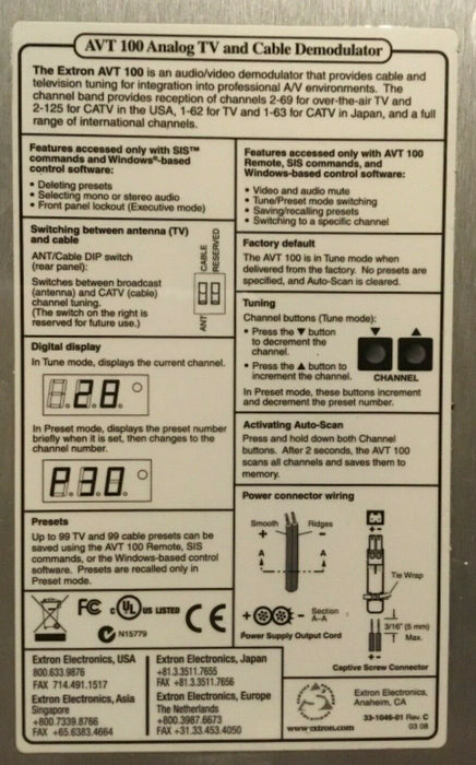 Extron AVT 100 Analog Closed Circuit Tv/Cable Tuner