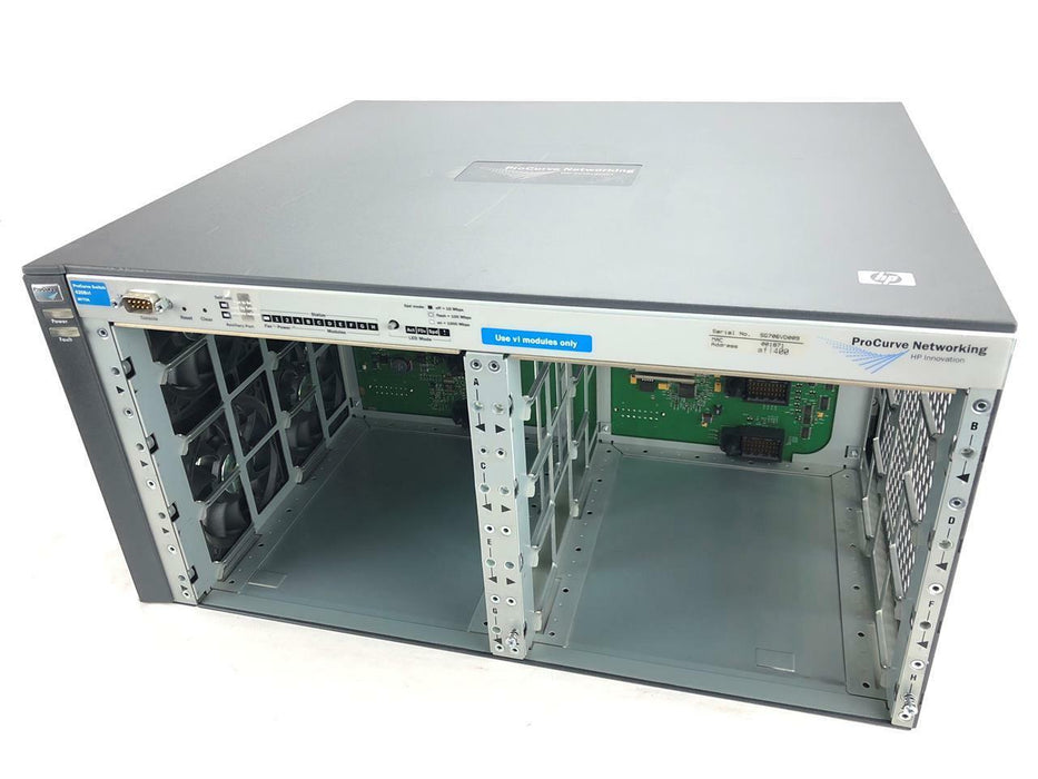 Product in Perfect working condition. Grade A-. There are no major blemishes or bent network ports. We have J8768A, J9033A, J8765A, J8776A, and J8773A card modules that are compatible with this product.