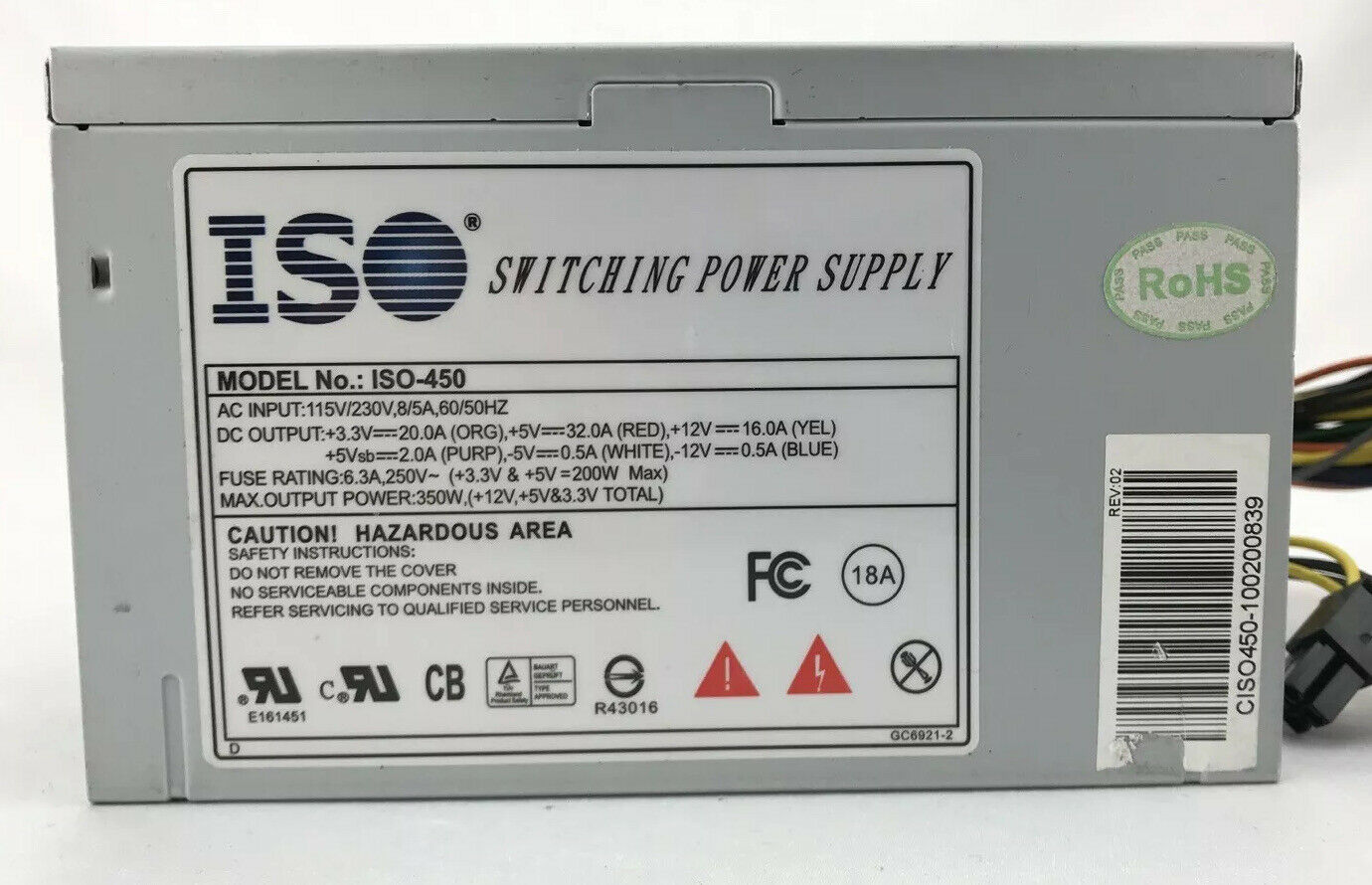 ISO-450 350W Desktop Switching Power Supply ATX PSU 115/230V 350 Watts Fast Ship