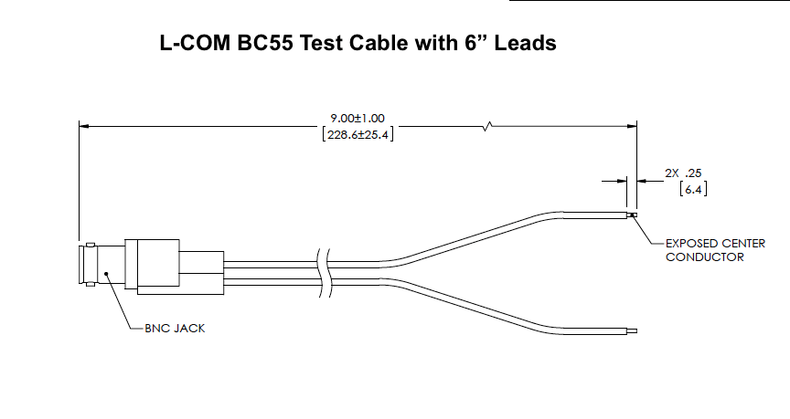 L-Com BC55 Test Cable BNC/Coaxial Female 6" Leads w/ Tinned End Durable Tips