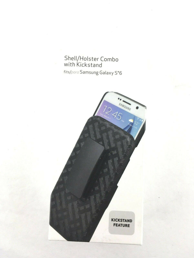 New Samsung Galaxy S6 Edge Shell / Holster Combo Case with Kickstand in Black