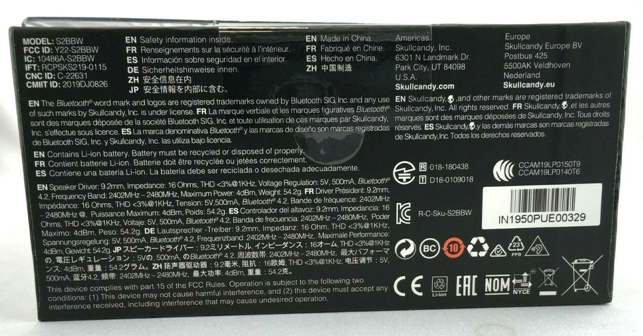Skullcandy S2BBW Push True Wireless Earbuds 6 Hours Playback / 12 Hours Total